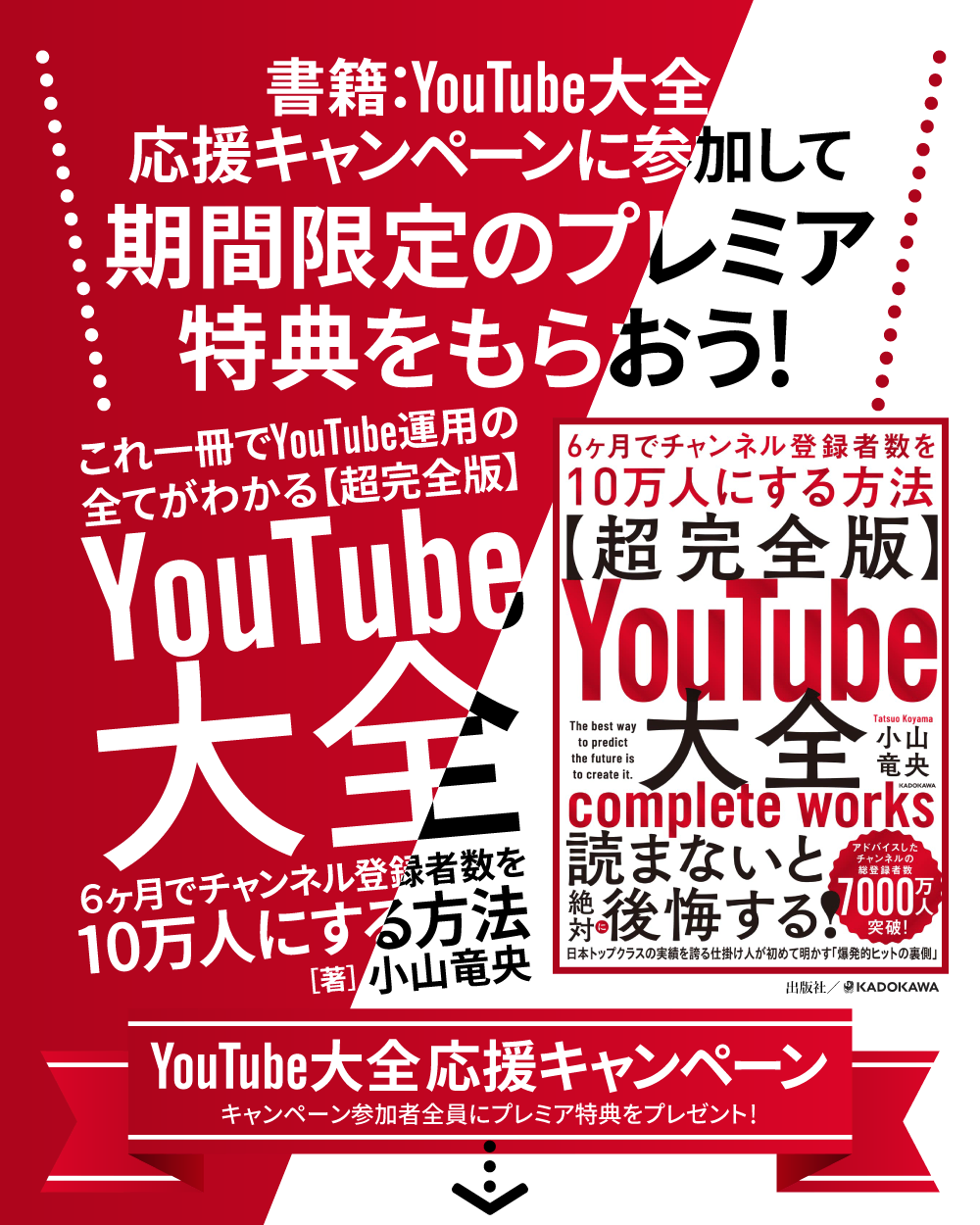 ※株式会社HUUKが管理する『YouTube大全』書籍キャンペーンに登録されます。