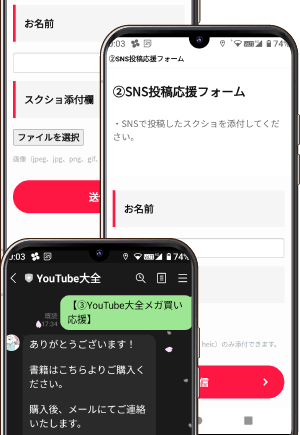 書籍を購入してご自身のTwitter、FB、Instagram、YouTube、メルマガ、LINEなどでYouTube大全を紹介する。