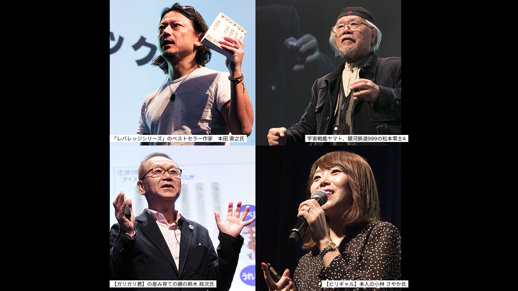 豪華講師陣は、【宇宙戦艦ヤマト】、【銀河鉄道999】の作者 漫画家の松本 零士氏、年5億本突破した【ガリガリ君】の産み育ての親の鈴木 政次氏、【ビリギャル】本人の小林 さやか氏など、様々な分野のトップクラスの講師が、今後の働き方、ロングセラーコンテンツを作る方法、最新のマーケティングについて講演・登壇しました。